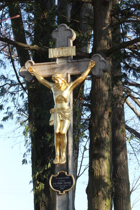 V letošním roce se jeden z potomků rodu Pufferů, pan Frederic Kryz rozhodl obnovit památku na své předky. V dubnu letošního roku opravil hrob děkana Puffera. Od poloviny července připravoval obnovu kamenného kříže, kterou ve značné míře prováděl restaurátor Vladimír Hlušička za účasti dalších pomocníků. V polovině srpna bylo kolem kříže postaveno lešení, ořezány větve a následně sejmut 80 kg těžký litinový korpus Ukřižovaného Ježíše a mramorová deska z hrobu Františka Puffera. Nápisová deska byla po sejmutí očištěna a písmo vytaženo stříbrem, stejně jako letopočet 1910 a text vytesaný na těle kamenného kříže. V druhé polovině září byla socha Ježíše a tabulka s nápisem INRI odvezena do Prahy na pozlacení, aby se po týdnu oba artefakty vrátily zpět. Na začátku října byl opraven betonový sokl kříže. Veškeré práce na restaurování ústředního kříže a kněžského hrobu za finančního přispění naší obce skončily 20. října 2018.