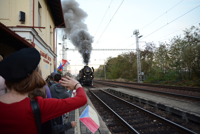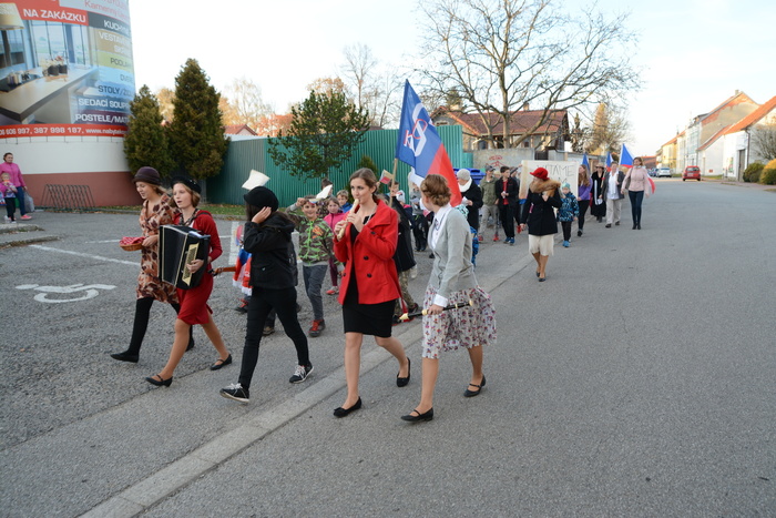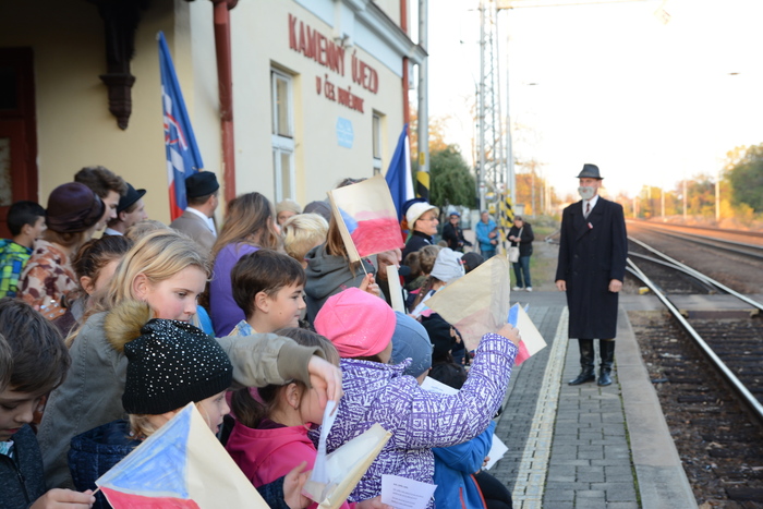 Na pátek 26. 10. si vedoucí oddílů pobytu v přírodě Klíček a Čtyřlístek připravili v rámci pravidelné schůzky speciální program k příležitosti blížícího se výročí vzniku Československa. V první části, při pátrací hře po celém Kameňáku, měly děti za úkol sbírat informace o osobnostech, které se zasloužili o samostatnost našeho státu. V další části si všichni vyrobili české vlaječky a jiné transparenty, zatímco vedoucí se převlékli do prvorepublikových kostýmů a společně se tak vypravili na nádraží, kde byl očekáván příjezd prezidenta Masaryka (který, jak známo, přes Kameňák projížděl vlakem, když se vracel zpět do vlasti). Kromě paní starostky, která rovněž přišla v dobových šatech, se přidalo i mnoho dalších přátel a rodičů. Pan prezident opravdu přijel, paní starostka pronesla uvítací řeč a společně jsme si zazpívali Ach synku a Lví silou. Celý průvod se pak vydal zpět k sokolovně.